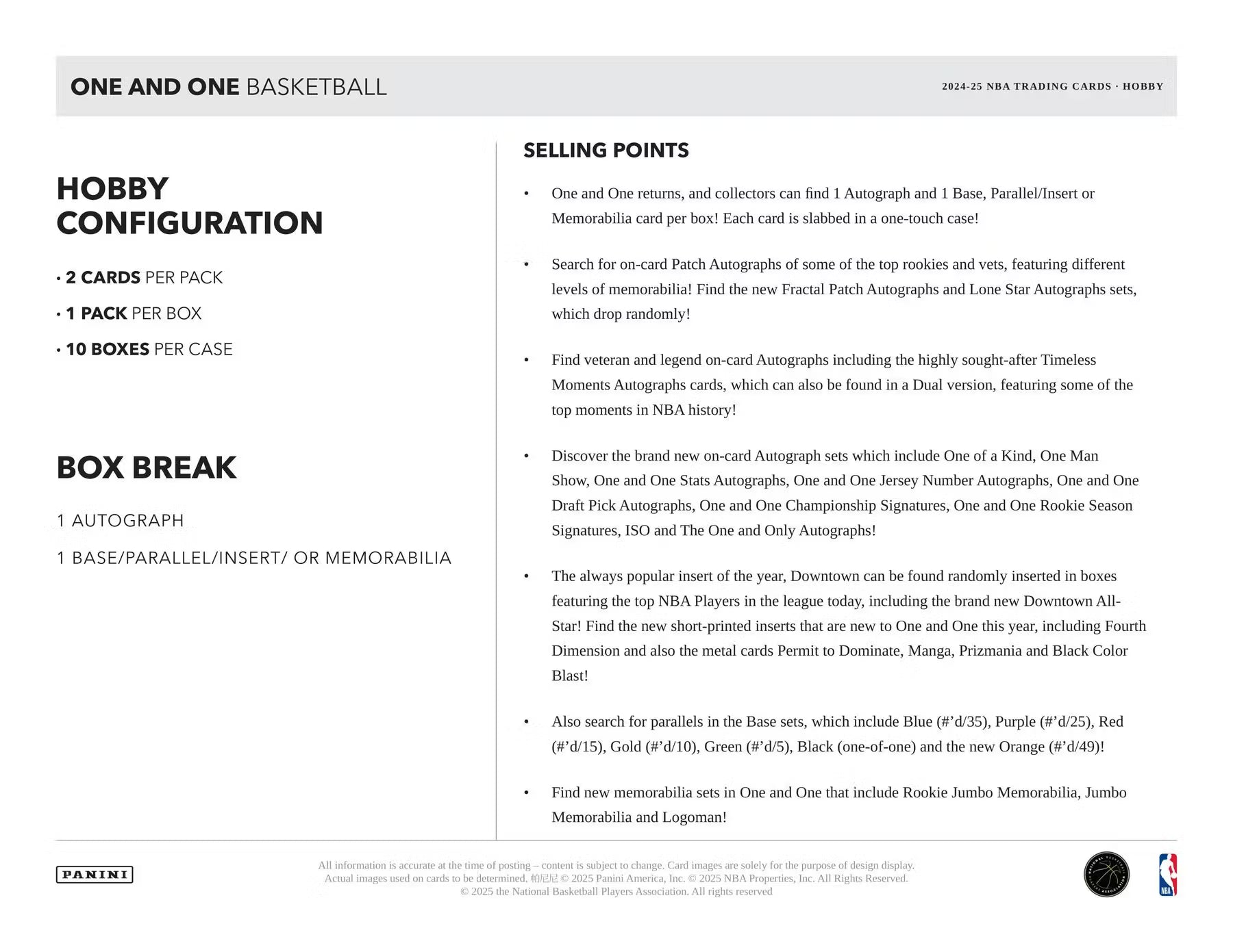 2024-25 Panini One and One NBA Trading Card Box (Hobby)