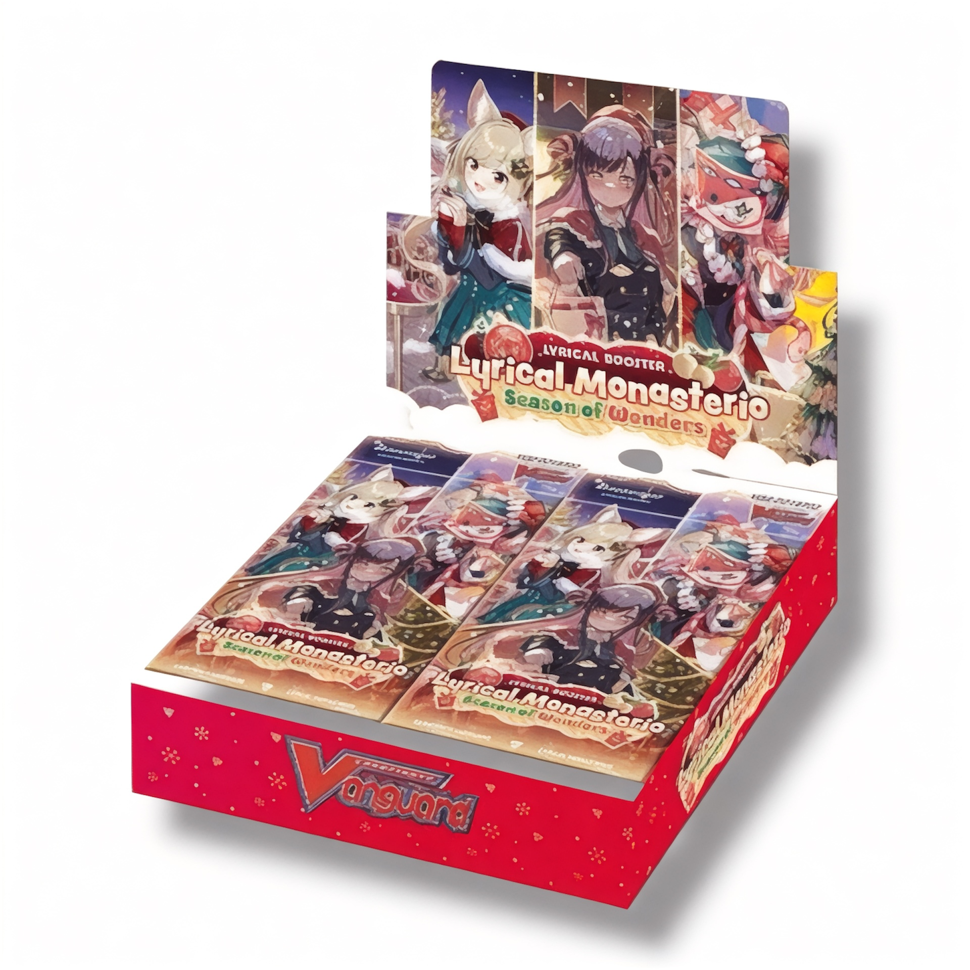 The Cardfight!! Vanguard Lyrical Monasterio Season of Wonders booster box, part of the Divinez series (DZ-LBT02), is themed around an "A Belated Celebration" and features units in festive outfits.